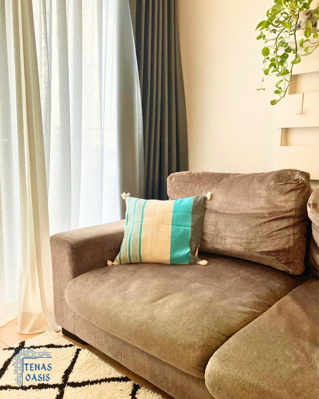 モロッコの職人によるハンドメイドのこのクッションカバーは、