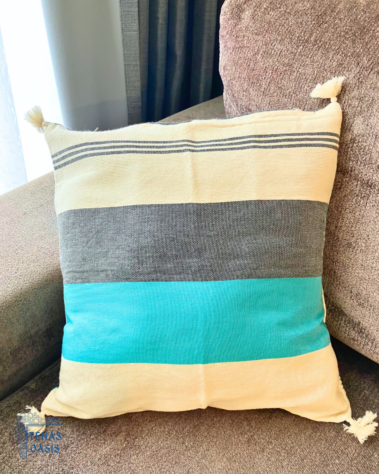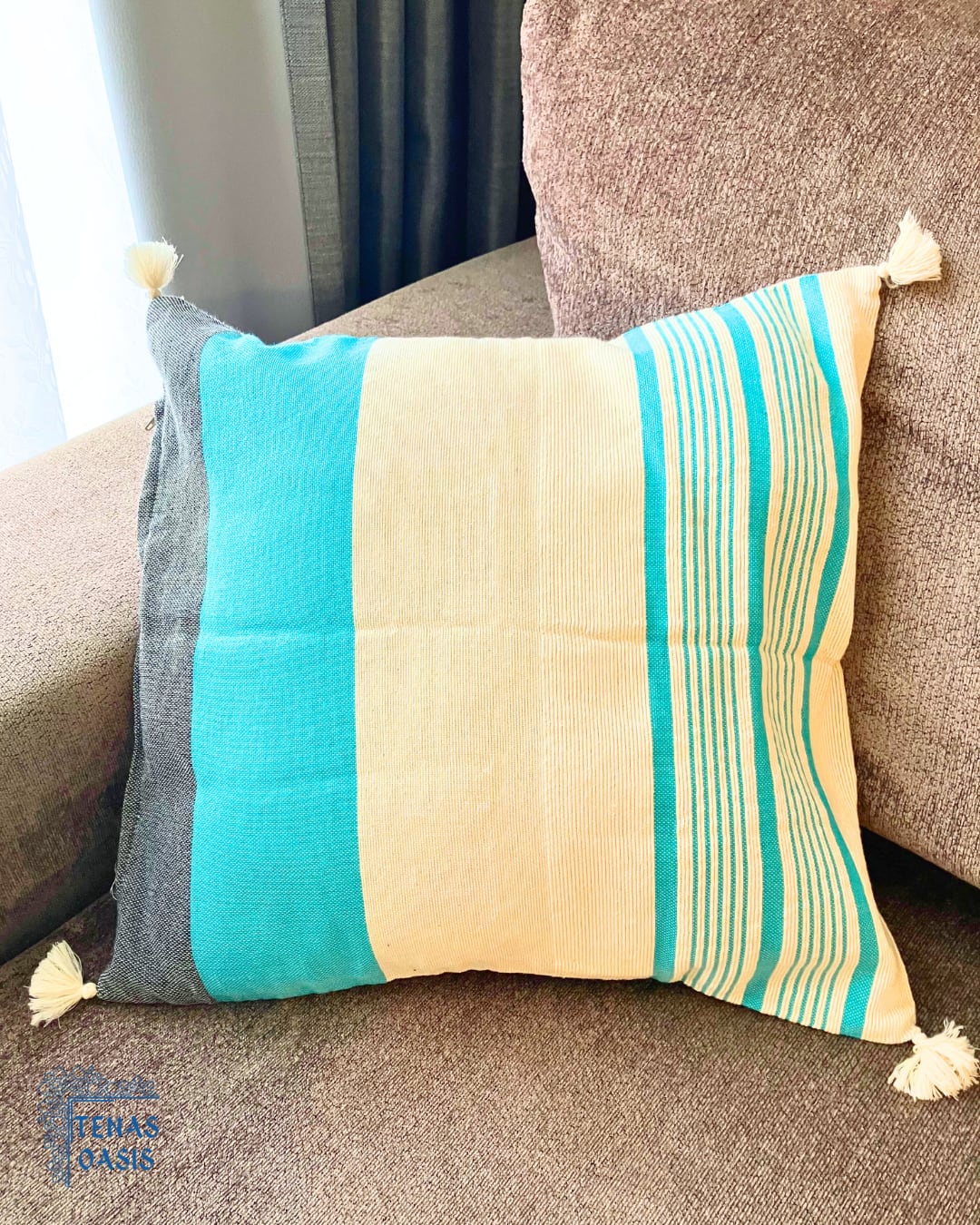 Crafted by Moroccan artisans, this cushion cover is a testament to the art of handmade craftsmanship, combining the softness of cotton and the exotic allure of cactus silk to create a piece that's both stylish and eco-friendly.