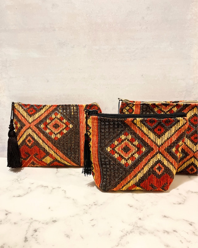 アマジーグ風のおしゃれなポーチがモロッコからやってきました。 クッションなどに使われる上質で丈夫な布を使用して、モロッコの仕立て屋さんが制作してくれたものです。 ほかでは流通していないもので、それぞれ1点物です。 アマジーグとは? マグレブ(モロッコやアルジェリアなどの北アフリカ)に古くから住む民族で、 同地域でアラブ系の人口がマジョリティになったいまも独自の言語や文化を維持しています。 ポーチの種類: A,B,Cのいずれかをお選びください。 A マチ無し、タテ16cm, ヨコ21cm B マチ5.5cm、タテ16cm, ヨコ15cm(底)~20cm(上部) C マチ5.5cm、タテ15cm, ヨコ14cm(底)~19cm(上部) #ポーチ #モロッコ #モロッカンインテリア #モロッカンインテリア雑貨 #エスニック #エスニック雑貨 #民族風 #amazigh #アマジーグ